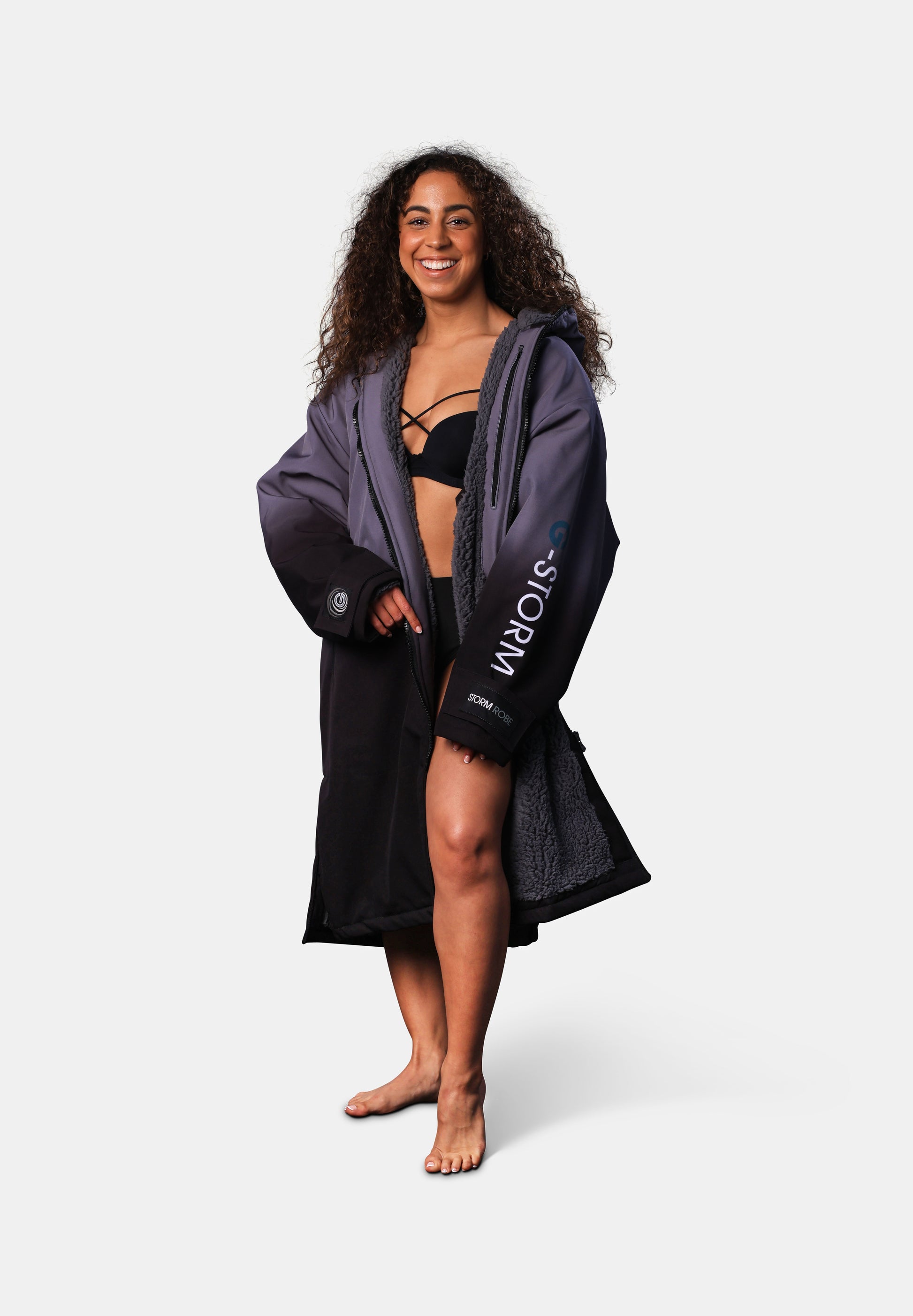 Designed for those who refuse to compromise on comfort or appearance, the Black & Grey Ombre G-Storm Robe is more than just a changing robe — it’s your all-weather essential.